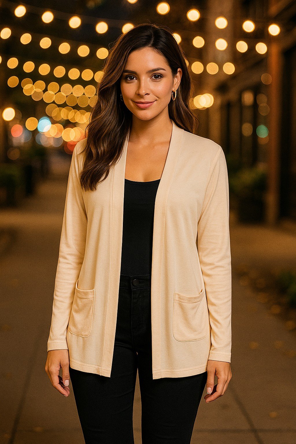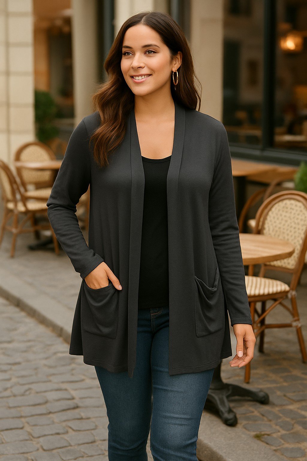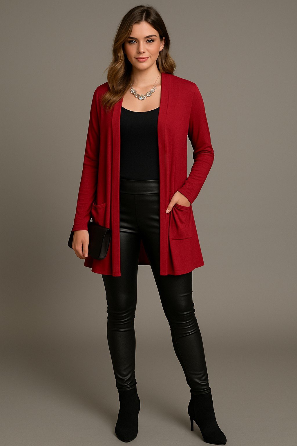 - Open- Front Design: Flattering drape that enhances any outfit, from casual to dressy.
