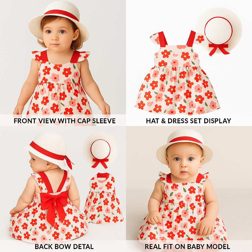 Dress your little one in style with these adorable toddler girl summer dresses, available in vibrant floral prints and soft cotton fabric. Choose from red & pink blooms or yellow & purple florals with a matching hat. Lightweight, breathable, and perfect for playdates, birthdays, or sunny outings.